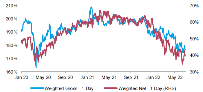 Figure 3: Hedge Fund Gross and Net Exposure (Jan-20 to Jun-22)