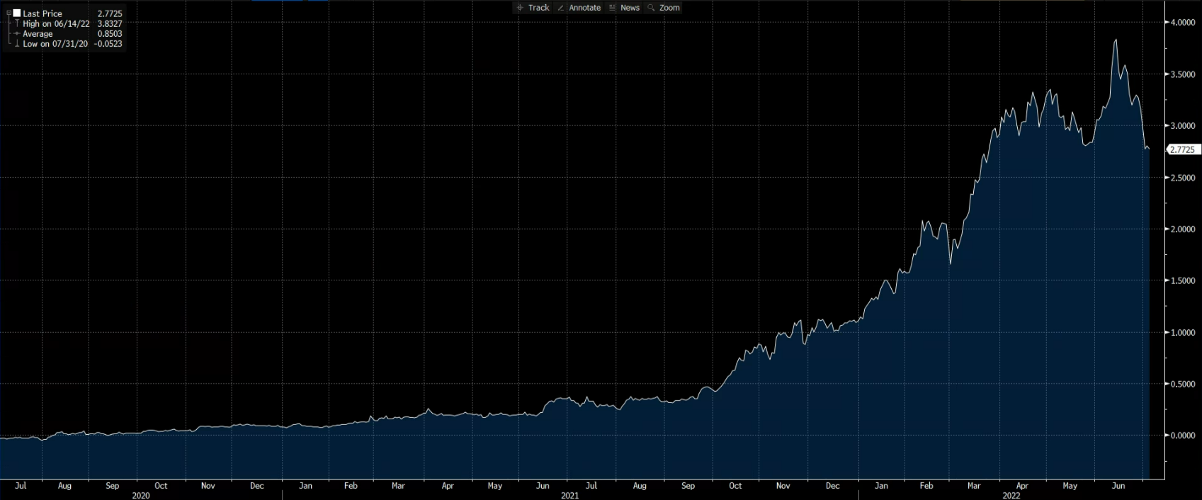 Figure 1: US 1Y1Y Forwards (Jul-20 to Jul-22)